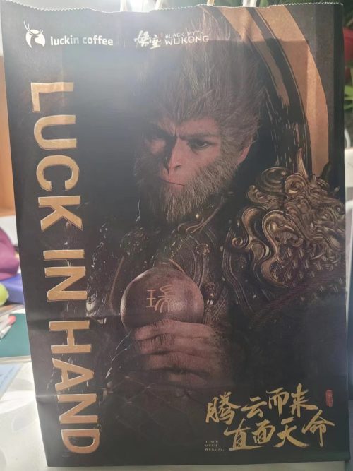 我买了一杯和黑神话联名的瑞幸咖啡😋(可惜海报周边被送完啦),支持一下3A游戏。明年一定会在steam上补票的。
